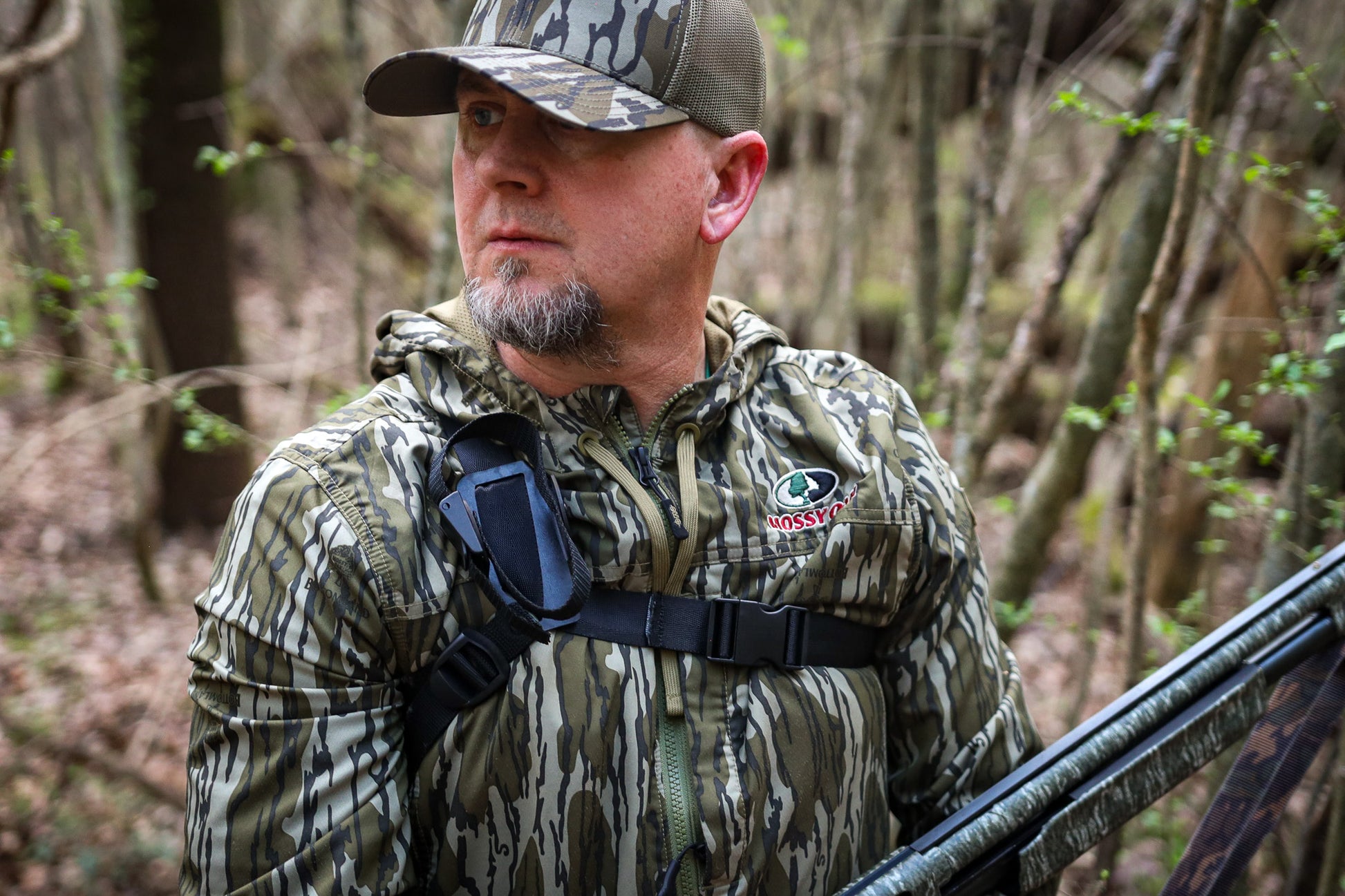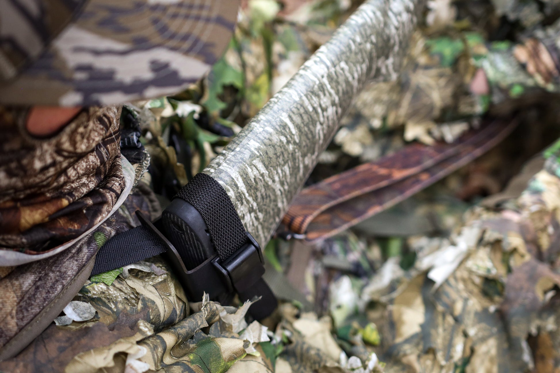 Worn across the chest, it cradles the butt of your shotgun or rifle, keeping your firearm locked into a shooting position while your hands stay free for calling, glassing, or just relaxing.